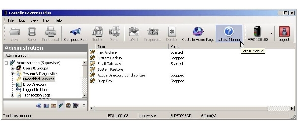 Electronic versions of the FaxPress Enterprise Getting Started Guide, Administrator Guide, Email Gateways Guide, the User Guide and additional documentation are accessible from FaxPress Plus, by clicking the Latest Manual icon.