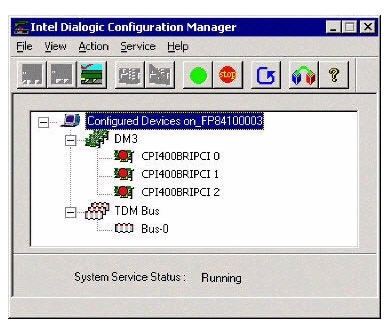 In the Intel Dialogic Configuration Manager window, right-click onand select tomake the system rescan the boards. |