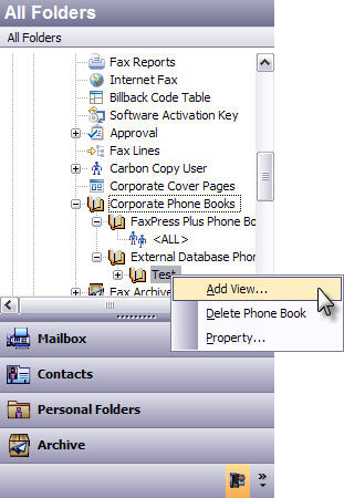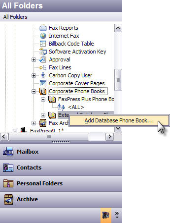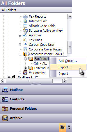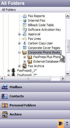 Expand the Administration branch, expand the Corporate Phone Books folder, and right click on FaxPress Phone Books. |