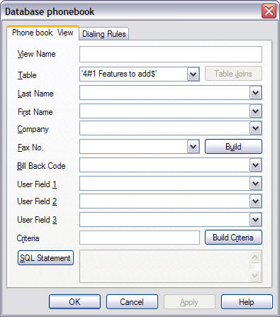 From the Database Phone Book dialog box you can select any table and column in your phone book database and associate it with a phone book field.