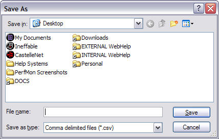 Navigate to a directory, specify a name, and save the file. The file will be exported as a comma delimited file. |