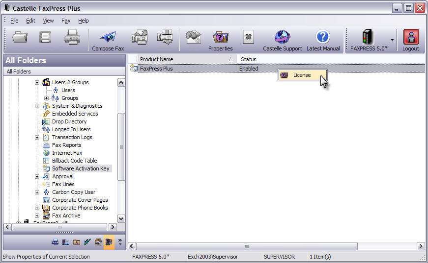 | 1. | Go to FaxPress Plus's Software Activation Key directory. |