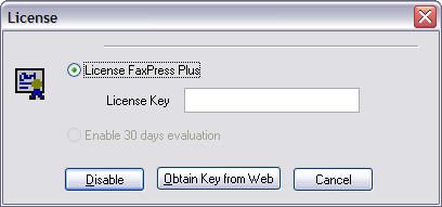 | 4. | Next, select the License FaxPress Premier and enter the 16-digit Activation Key code exactly as given in the Activation Key field. Include all hyphens, exclude spaces, then click Enable. You can also choose to select the Enable 30 days evaluation option. |
