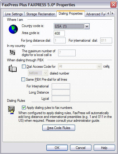 Set the rules for dialing area codes in the US or Canada by clicking the Area Code Rules button.