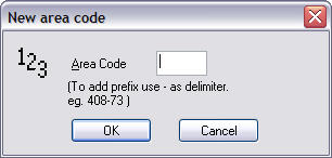 Use the New area code window to enter an area code and prefix that does not require the addition of area code numbers.