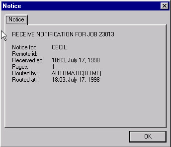 Routed at — The time the fax was routed and the notice dispatched to you.